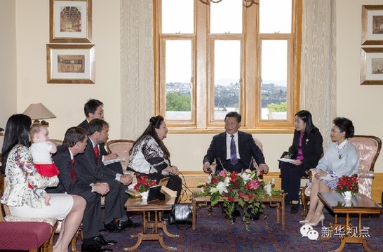 2014年11月18日,習(xí)近平在澳大利亞塔斯馬尼亞州看望已故前州長培根的家人。新華社記者丁林?jǐn)z