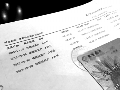 郭先生提供的銀行賬戶交易記錄。京華時報(bào)記者楊鳳臨攝