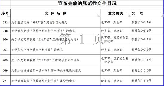 日前,教育部宣布失效一批規(guī)范性文件,其中包括《關(guān)于繼續(xù)實(shí)施“985工程”建設(shè)項(xiàng)目的意見》《關(guān)于補(bǔ)充高等教育“211工程”三期建設(shè)規(guī)劃的通知》《關(guān)于實(shí)施“重點(diǎn)特色學(xué)科項(xiàng)目”的意見》《關(guān)于繼續(xù)實(shí)施“優(yōu)秀學(xué)科創(chuàng)新平臺(tái)”建設(shè)的意見》等文件。