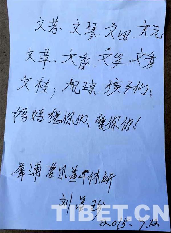 △劉昌珍給10個(gè)漢藏兒女們寫的字條