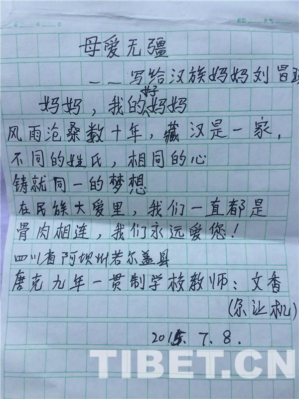 △文香(尕讓機(jī))給漢族媽媽劉昌珍寫的信。