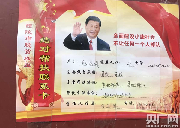 看到記者來采訪,耿龍威的妻子顯得很高興,熱情地倒茶洗水果。很顯然,她對(duì)即將住進(jìn)的新房充滿了期待,看到她走路有些顛簸,村委會(huì)的干部告訴記者,她其實(shí)腿腳不便,家里的門上貼著的幫扶聯(lián)系卡上寫的也是因病、因殘致貧。
