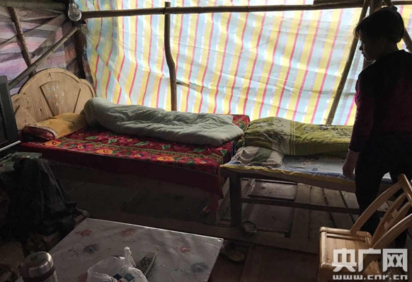 而她并不知道的是,就在她去洗水果的時(shí)候,同行的村婦女主任悄悄告訴記者,她的女兒在四川打工,才29歲就患上了肺癌,光治療的費(fèi)用已經(jīng)花掉了40多萬,家里欠下了很多債務(wù),如果不是因?yàn)檫@樣,他們家也不會(huì)變成貧困戶,幸虧有幾個(gè)侄子在四川做生意,才勉強(qiáng)維持著生活。在耿龍威的這個(gè)“窩棚”家里,記者看到的陳設(shè)很簡(jiǎn)單,除了兩張床一個(gè)桌子和幾把椅子,幾乎沒有什么像樣的家具,這個(gè)簡(jiǎn)陋的“家”外面只是蓋了一層薄薄的塑料。