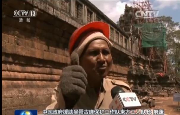 舞臺(tái)之外,還有更多柬埔寨的歷史,被歲月淹沒(méi)在吳哥遺跡里。努蓬已經(jīng)72歲了,一直跟隨著來(lái)自中國(guó)的文物修復(fù)專(zhuān)家,去還原吳哥文明的原貌。