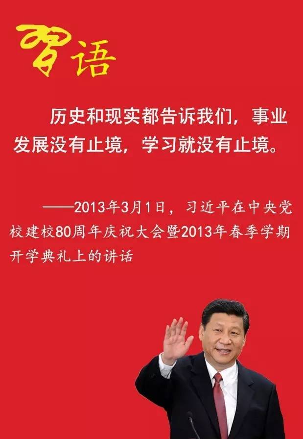 習(xí)近平指出,要堅持干什么學(xué)什么、缺什么補什么,努力使自己真正成為行家里手、內(nèi)行領(lǐng)導(dǎo)。他說:“學(xué)史可以看成敗、鑒得失、知興替;學(xué)詩可以情飛揚、志高昂、人靈秀;學(xué)倫理可以知廉恥、懂榮辱、辨是非!