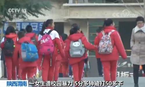 這段手機(jī)拍攝的視頻,總長5分35秒。視頻中,一名身穿校服的女孩,不斷被幾個(gè)人毆打,施暴者一邊對她扇耳光、用腳踢,一邊辱罵,言語中反復(fù)提到了錢。