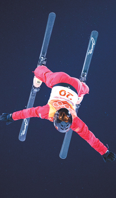 16日,中國選手張鑫在參加平昌冬奧會自由式滑雪女子空中技巧決賽! ”緢笥浾 史家民攝