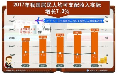 2017年,全國(guó)居民人均可支配收入實(shí)際增長(zhǎng)7.3%,增速比上年加快1個(gè)百分點(diǎn),快于國(guó)內(nèi)生產(chǎn)總值增速0.4個(gè)百分點(diǎn)。國(guó)內(nèi)游客人次比上年增長(zhǎng)12.8%,國(guó)內(nèi)旅游收入增長(zhǎng)15.9%,國(guó)內(nèi)居民因私出境增長(zhǎng)5.7%。
