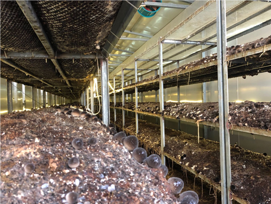 在能源上循環(huán)中,食用菌種植主要以草菇和雙孢菇為主。草菇種植的主要原料為稻草、玉米等農(nóng)作物秸稈,草菇種植后的廢料就作為雙孢菇種植的原料,通過添加土及其它配料發(fā)酵生產(chǎn),有機廢水通過污水處理達(dá)標(biāo)后用于農(nóng)業(yè)灌溉,實現(xiàn)了秸稈回收和污水變凈水等能源上的循環(huán)。