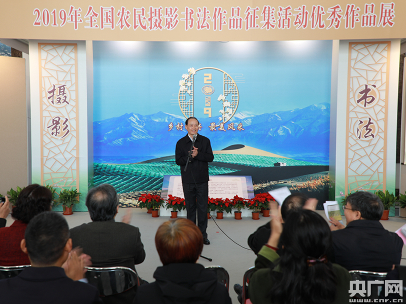 央廣網(wǎng)北京10月28日消息(記者許睿)“鄉(xiāng)村振興·最美風(fēng)采”2019年全國(guó)農(nóng)民攝影書法作品征集活動(dòng)優(yōu)秀作品展開幕式暨頒獎(jiǎng)活動(dòng),于10月28日上午在北京全國(guó)農(nóng)業(yè)展覽館舉行。農(nóng)業(yè)農(nóng)村部黨組副書記、副部長(zhǎng)、中國(guó)農(nóng)民體育協(xié)會(huì)主席余欣榮為獲獎(jiǎng)代表頒獎(jiǎng),并宣布優(yōu)秀作品展開展。