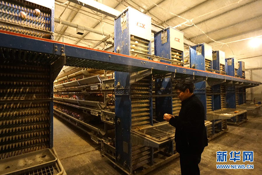 中華村嘉多喜蛋雞養(yǎng)殖股份合作社,采用了自動集蛋設(shè)備,自動化程度高。新華網(wǎng)發(fā)(劉柳吟 攝)