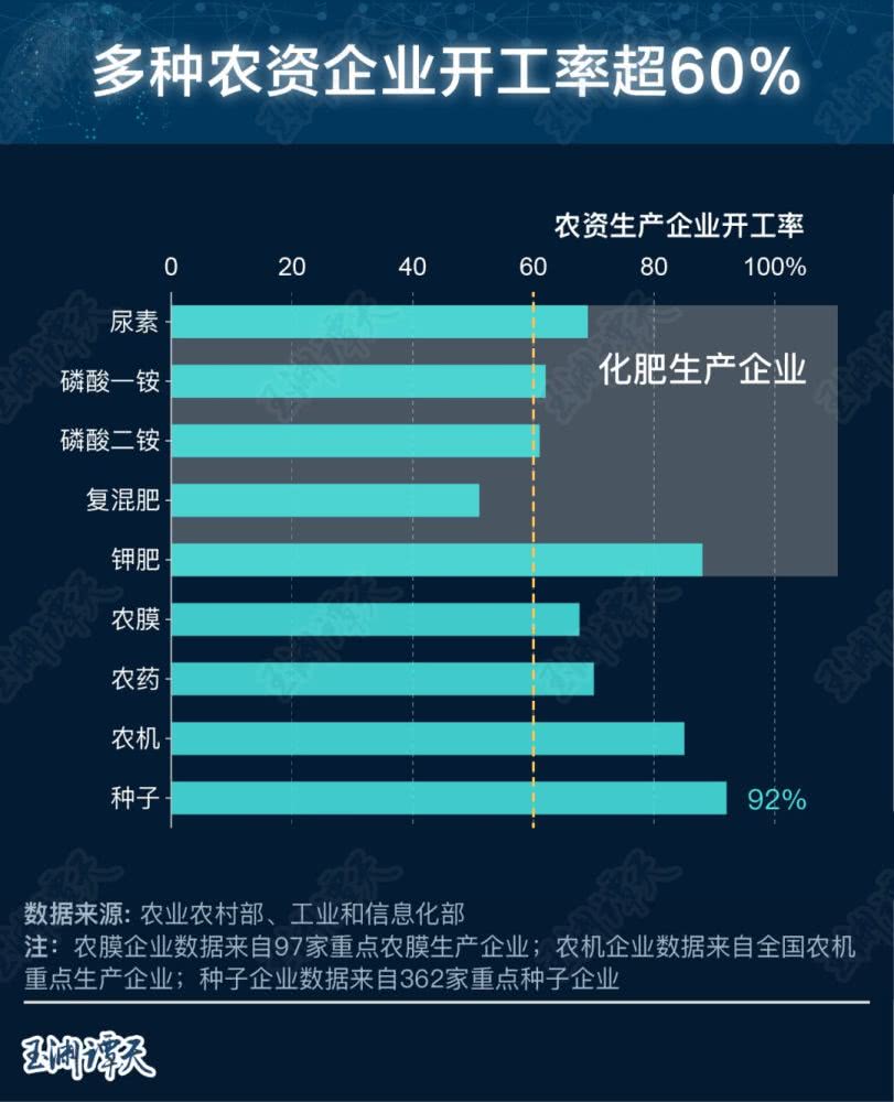 多種企業(yè)開工率超過60%,種子、鉀肥、農機的企業(yè)開工率已經達到90%上下。