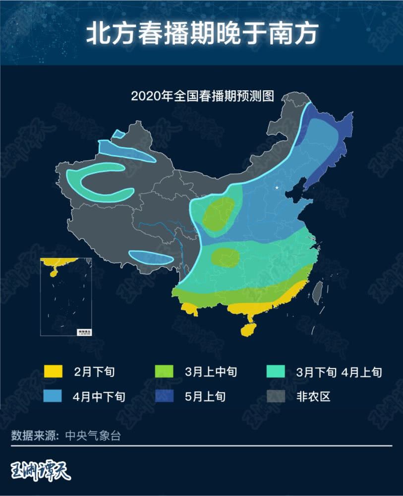 這是中央氣象臺對春播期的預測圖,明顯看出從南到北的春播節(jié)奏,從農時看,4月份和5月上旬才是多數(shù)北方地區(qū)的春播期。