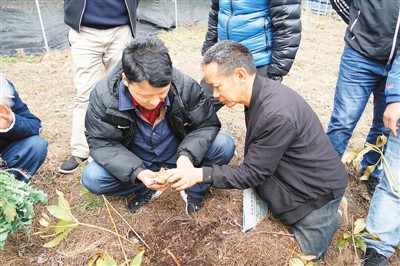 王浩在查看貢菜的品質(zhì)。.