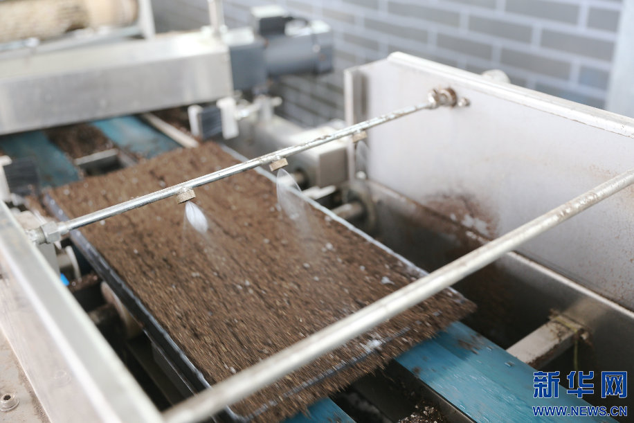 自動播種機(jī)通過流水線方式完成播種、澆水流程。新華網(wǎng) 曹楨攝