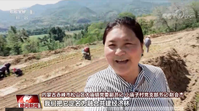 內(nèi)蒙古赤峰市松山區(qū)大廟鎮(zhèn)黨委副書記 小廟子村黨支部書記 趙會杰:現(xiàn)在大家看到的是我們的大廟鎮(zhèn)小廟村的經(jīng)濟林果樹園區(qū),這是在今年春季我們?nèi)?zhèn)19個行政村的黨組織和黨員干部群眾義務為我們村建起的經(jīng)濟林果樹園區(qū),我們把它定名為融合共建經(jīng)濟林。