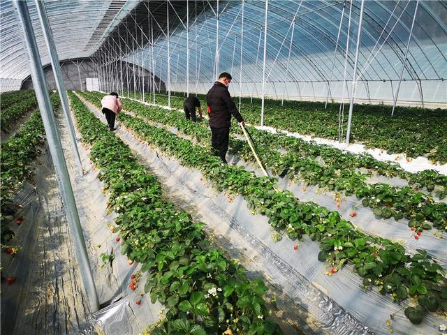 巴宜區(qū)更章鄉(xiāng)門仲村群眾正在溫室大棚里對(duì)草莓進(jìn)行管理