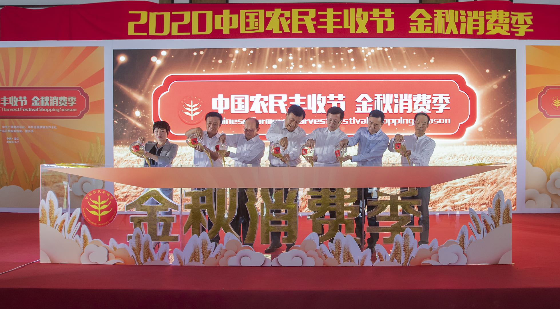 9月7日,由農(nóng)業(yè)農(nóng)村部、中央廣播電視總臺(tái)、中華全國供銷合作總社聯(lián)合發(fā)起的2020年中國農(nóng)民豐收節(jié)金秋消費(fèi)季在北京啟動(dòng)。農(nóng)業(yè)農(nóng)村部副部長于康震、中央廣播電視總臺(tái)副臺(tái)長蔣希偉、中華全國供銷合作總社理事會(huì)副主任鄒天敬,與三位農(nóng)民代表共同開啟“豐收門”。