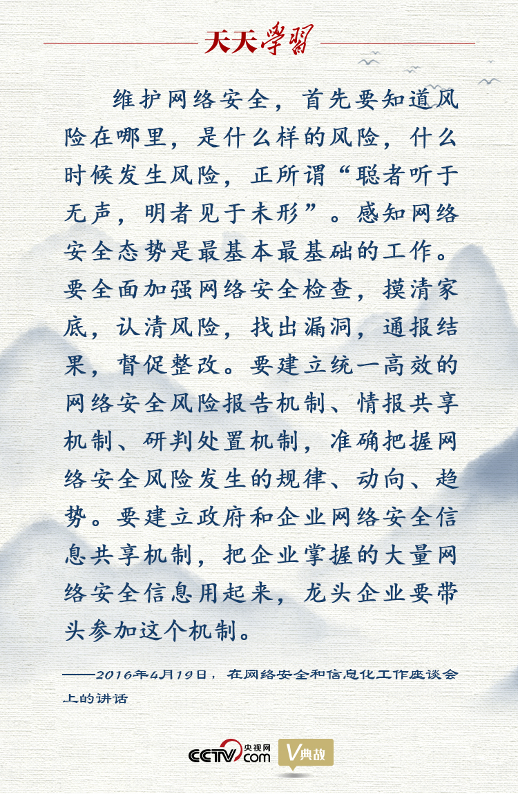 2016年4月19日,在網(wǎng)絡(luò)安全和信息化工作座談會(huì)上,習(xí)近平總書記引用“聰者聽于無聲,明者見于未形”這句古語,強(qiáng)調(diào)感知網(wǎng)絡(luò)安全態(tài)勢(shì)在信息安全領(lǐng)域的重要性,指出只有對(duì)網(wǎng)絡(luò)安全的發(fā)展趨勢(shì)進(jìn)行準(zhǔn)確預(yù)測(cè)、預(yù)警,知道風(fēng)險(xiǎn)在哪里,是什么樣的風(fēng)險(xiǎn),什么時(shí)候發(fā)生風(fēng)險(xiǎn),才能預(yù)先防范網(wǎng)絡(luò)安全風(fēng)險(xiǎn)。