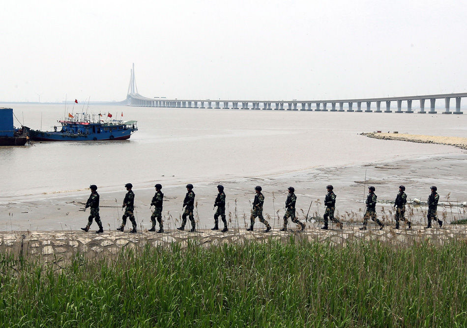 5月15日,武警官兵在上海長(zhǎng)江水域武裝巡邏。亞信峰會(huì)臨近,擔(dān)負(fù)上海長(zhǎng)江隧橋和重要隧道警戒任務(wù)的武警上?傟(duì)四支隊(duì)全面進(jìn)入“峰會(huì)時(shí)間”,時(shí)刻保持箭在弦上,確保警衛(wèi)目標(biāo)萬(wàn)無(wú)一失。