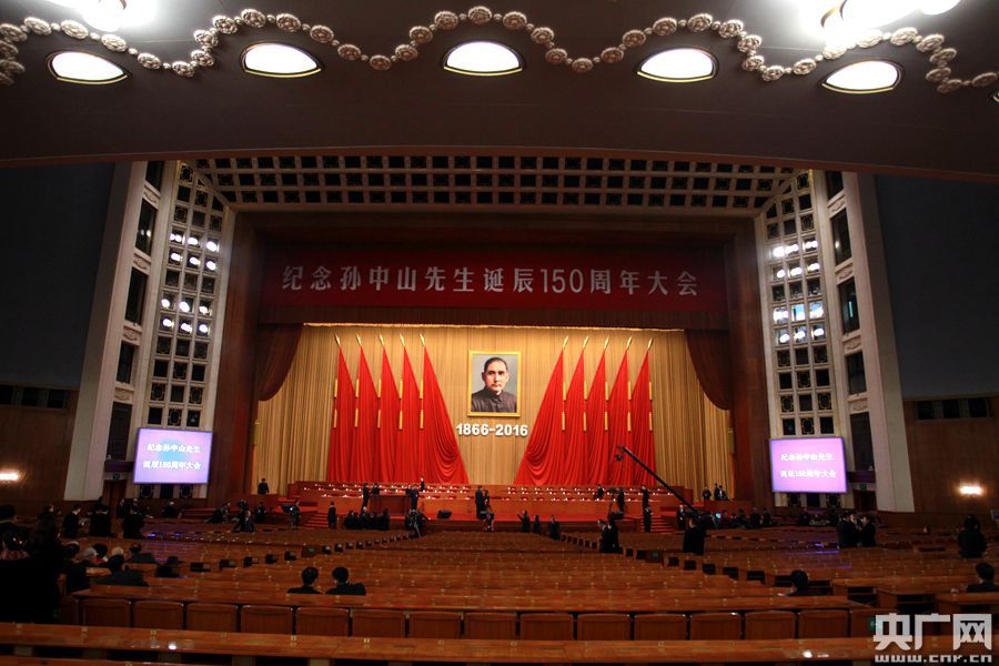 央廣網(wǎng)北京11月11日消息(記者 韓靖) 紀(jì)念孫中山先生誕辰150周年大會(huì)將于今日上午10點(diǎn)在人民大會(huì)堂舉行。圖為孫中山先生誕辰150周年大會(huì)現(xiàn)場(chǎng)。