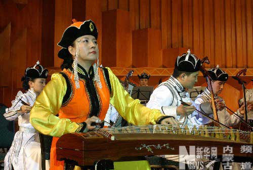 12月10日晚,蒙古國(guó)“牧人魂”國(guó)家藝術(shù)團(tuán)在呼和浩特舉辦“蒙古旋律”主題音樂(lè)會(huì)。這是蒙古國(guó)樂(lè)手用蒙古古箏演奏中國(guó)樂(lè)曲《梁!。 新華社記者李澤兵攝