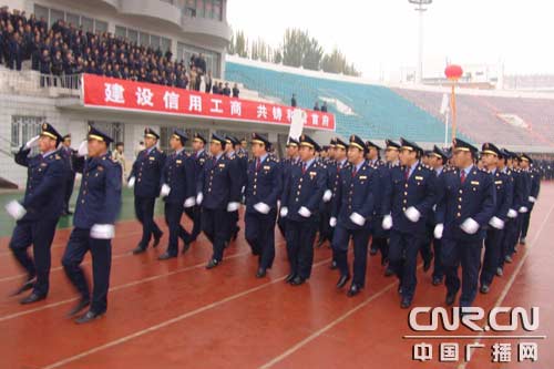 中廣網(wǎng)呼和浩特10月22日消息(記者那森寶音、通訊員李健、中文) 2008年10月21日在大馬路體育場,呼和浩特市工商系統(tǒng)800多名干部精神抖擻,意氣盎然,邁著整齊的步伐接受有關(guān)部門的檢閱,展現(xiàn)了首府工商的精神風(fēng)貌和良好形象。