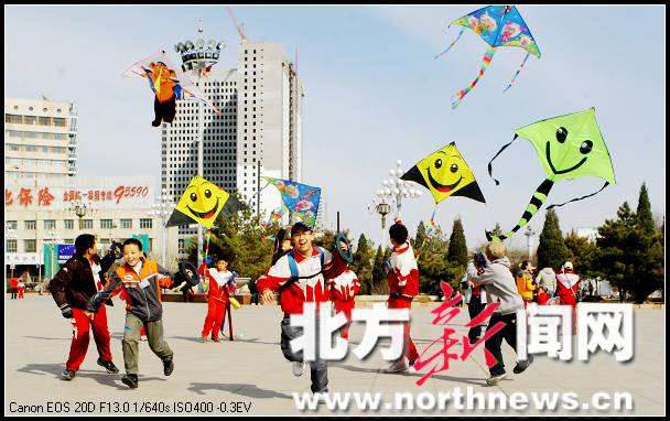 在3月25日舉行的風(fēng)箏比賽上,小學(xué)生們開心地放飛風(fēng)箏!凹堷S上青天,一去三千尺!便逶≈猴L(fēng),包頭市昆區(qū)包鋼實驗一小在阿爾丁廣場舉行了放飛夢想風(fēng)箏比賽,600多名小學(xué)生在春天的懷抱中放飛了夢想。(周蕾)