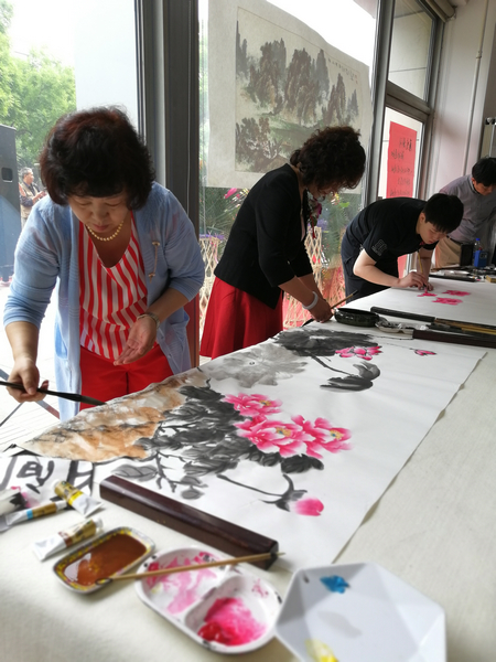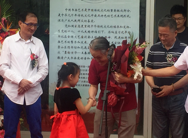 央廣網(wǎng)北京5月12日消息(記者馮玉婷)“幾代學(xué)員同作畫,公益課堂無逸齋”。隨著7歲小學(xué)生、超市收銀員、企業(yè)高管與73歲的書畫家王春林同臺同畫《富貴和諧》,王春林從藝60周年書畫展于2018年5月12日在北京市石景山區(qū)圖書館開幕,王春林所作的百幅山水、花鳥等國畫精品及篆、隸、草、行、楷等多種書體的書法精品將免費(fèi)向公眾展出。這是北京市石景山區(qū)美術(shù)家協(xié)會、北京市石景山區(qū)圖書館、無逸齋書畫工作室聯(lián)合主辦的公益展覽教育活動。北京市石景山區(qū)文聯(lián)主席郭明、石景山區(qū)圖書館館長吳私、知名書畫評論家阿登、中國文化義工聯(lián)合會副主席王勝利等出席開幕式并致辭。