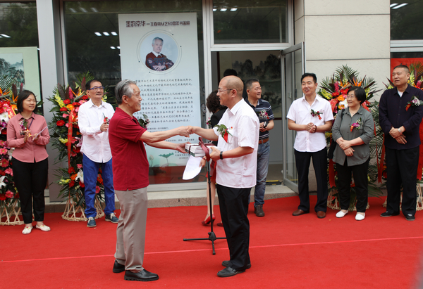 開幕式中,王春林向北京市石景山區(qū)圖書館贈送《王春林書畫作品集》。他表示,從藝60年也曾困頓,疑惑,動搖,但經(jīng)多位名師指點(diǎn),最終堅(jiān)持了下來,所以他深刻體會到熱愛書畫藝術(shù)卻無路可尋的苦悶。近10年來,他不斷堅(jiān)持書畫創(chuàng)作,還創(chuàng)辦了無逸齋書畫工作室,幾乎以全年無休的狀態(tài),致力于推動國畫書法的民間教學(xué),陸續(xù)培養(yǎng)了150名學(xué)生,讓他們在各自的學(xué)習(xí)、生活、工作領(lǐng)域擁有了令人羨慕的藝術(shù)特長。