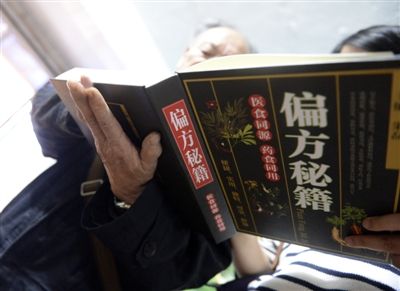 更多的“秘方”在秦大爺枕邊的一本書上,名為《偏方秘籍》,沒有版權頁和出版社,上面記錄了上萬例疾病的秘方。秦大爺認定該書價值連城,900多元買回來每天都要翻一翻!皩碜訉O都可以看,里面偏方太多了!