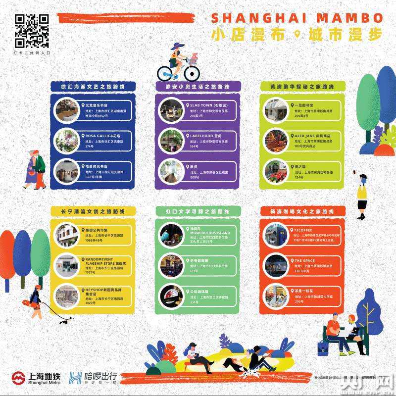 10月17日起,公眾可以在投放站點(diǎn)獲取打卡地圖指南,或在Metro大都會app、哈啰出行app、微信Metro生活小程獲取打卡二維碼,掃碼進(jìn)行這個(gè)秋天最美的壓馬路之旅,探秘充滿驚喜的上海小店。哈啰單車將于逛馬路節(jié)期間發(fā)放10萬份騎行福利,并對部分成功打卡用戶獎(jiǎng)勵(lì)免費(fèi)騎行周卡,鼓勵(lì)用戶騎游上海探索小馬路。