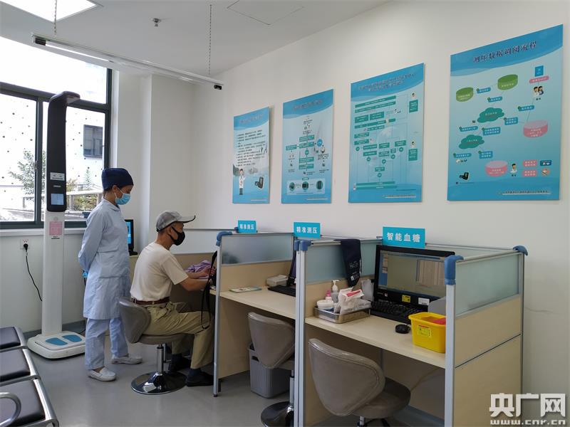 居民在工作人員幫助下進(jìn)行精準(zhǔn)測(cè)壓(央廣網(wǎng)記者 林馥榆 攝)