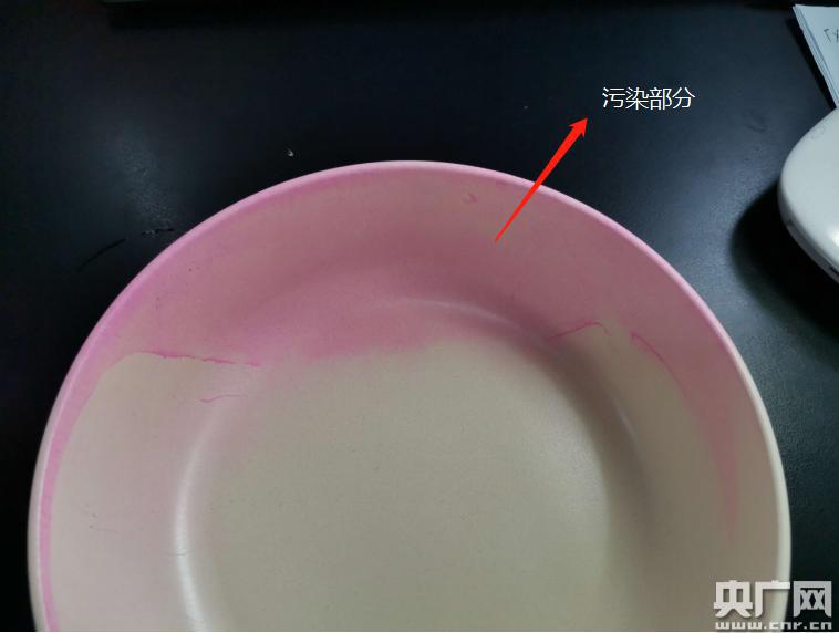 密胺類餐具時常出入廚房,免不了在濕熱環(huán)境下放置或使用,“耐高溫”“不易碎”等常常成為商家宣傳的“賣點”,耐濕熱性主要考核的就是產(chǎn)品在濕熱環(huán)境下的品質。另外,日常使用中,食物的顏色、殘渣等會沾染在餐具上,餐具到底耐不耐臟,也是消費者關心的一個方面。本次比較試驗結果顯示,耐濕熱測試后,有5件樣品產(chǎn)生裂紋,其中4件為竹纖維餐具,1件為普通密胺餐具,如標稱由廣州簡米餐具有限公司生產(chǎn)的網(wǎng)紋山水8.5英寸面碗,經(jīng)相關測試后,邊緣出現(xiàn)裂紋(詳見圖二);4件樣品的耐污染性較差,其中3件為竹纖維餐具,1件為普通密胺餐具,如標稱由安徽輕工國際貿(mào)易股份有限公司生產(chǎn)的天然竹纖維多用淺碗,經(jīng)相關測試后,有明顯污染(詳見圖三)。
