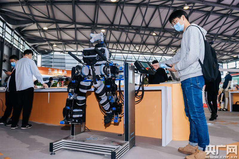 展出的程天科技外骨骼機(jī)器人主要用于中樞神經(jīng)病變導(dǎo)致下肢運動功能障礙人群進(jìn)行康復(fù)訓(xùn)練,這種機(jī)器人可以在人體膝蓋和髖關(guān)節(jié)等位置配備傳感器和編碼器,在“讀懂”使用者的意圖后,結(jié)合傳感器融合技術(shù)與智能建模算法,從而幫助使用者行走。
