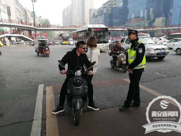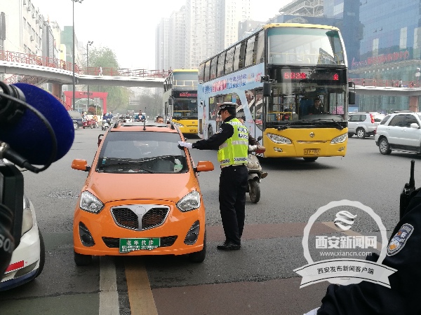 6號上午10點,記者來到小寨十字,十字西南角停放著10余輛兩輪車和3輛電動三輪車。雁塔大隊小寨中隊教導員賀向偉介紹,兩三輪車闖紅燈、走機動車道、穿插行駛等違法行為十分普遍,這些車大多數(shù)都是無牌照、無手續(xù)、非法運營。說話間,一輛橙色的老年代步車在機動車道從北向南駛來,并且沒有懸掛號牌,賀向偉將其攔下。面對查處,這名50多歲的駕駛人表示很“冤”,“買的時候商家說沒問題,沒想到過不去交警這關。”而且他還沒有駕駛證。