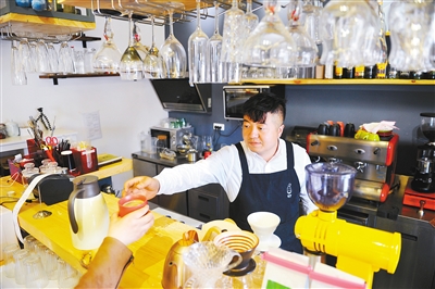 創(chuàng)業(yè)者堅(jiān)春天與他的綠驢咖啡館 記者 翟小雪 攝