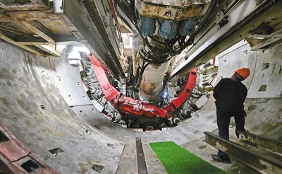 地鐵9號(hào)線(xiàn)一期工程現(xiàn)場(chǎng),龐大的盾構(gòu)機(jī)開(kāi)始啟動(dòng)。 記者 張宇明攝