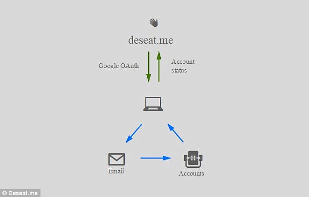 該網(wǎng)站稱,可以列出你創(chuàng)建過的所有賬戶,將這些賬戶與相應(yīng)的網(wǎng)頁建立鏈接,指導(dǎo)你永久性地刪除這些賬戶信息。你只需要為網(wǎng)站提供你所希望刪除的賬戶,Deseat.me就可以幫你實(shí)現(xiàn)。 該網(wǎng)站還表示,雖然使用了谷歌的開放授權(quán)協(xié)議,但是并沒有權(quán)限獲取用戶登錄信息。