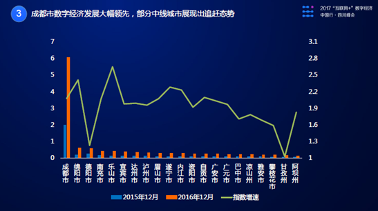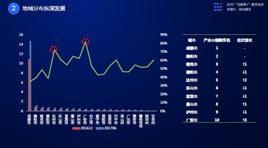 以成都為核心的成都平原地區(qū)已成為數(shù)字經(jīng)濟發(fā)展核心地帶,帶動四川全省消費升級。達州、樂山、南充、綿陽、德陽等城市的數(shù)字經(jīng)濟均取得了較快增長,2017年上半年整體增速領先于四川其他區(qū)域。
