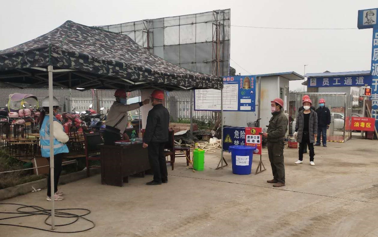 工人復(fù)工,每天都需要在門(mén)口進(jìn)行實(shí)名制人臉識(shí)別進(jìn)門(mén)、消毒通道殺毒、測(cè)溫等防疫工作。(項(xiàng)目工地供圖 央廣網(wǎng)發(fā))