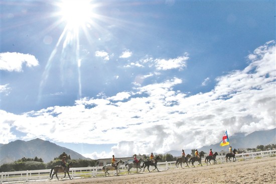 我市今年第一季度環(huán)境空氣質(zhì)量優(yōu)良率達百分之百,無輕度、中度、重度、嚴重污染天氣。圖為藍天白云下的拉薩賽馬場。 本報記者 貢嘎來松攝
