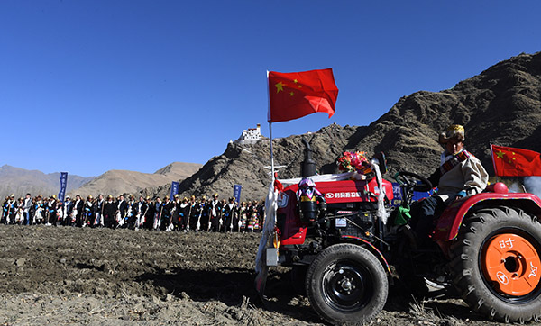 當日是藏歷的正月十九,西藏各地迎來“開耕節(jié)”。西藏山南市乃東區(qū)昌珠鎮(zhèn)門中崗村的上百位村民身著盛裝,載歌載舞,在西藏第一塊農(nóng)田,上演一場傳承千年的春耕儀式。