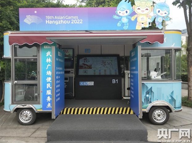 和車(chē)位一樣變得好找的,還有衛(wèi)生間。在武林廣場(chǎng)西側(cè),停著一輛“百事通”藍(lán)紫色花車(chē),車(chē)身上寫(xiě)著“武林廣場(chǎng)便民服務(wù)點(diǎn)”鉆進(jìn)車(chē)?yán),正中央的一塊信息大屏上,點(diǎn)觸屏幕上的“找公廁”,地圖上就跳出了一個(gè)個(gè)公廁圖標(biāo)。離便民服務(wù)點(diǎn)最近的是中央商場(chǎng)B1層的公廁,點(diǎn)擊圖標(biāo),還能看到這個(gè)公廁的詳情:相距41米;總廁位男5女5,空廁位男4女4……