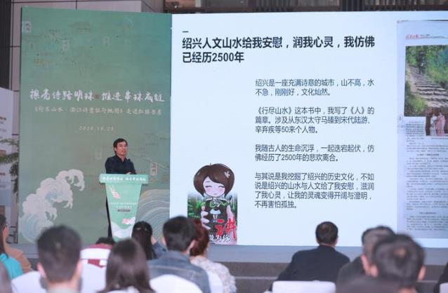 “《行盡山水》這本書(shū)中,我寫(xiě)了‘人’的篇章! 主創(chuàng)人員劉釗林表示,在《行盡山水》里,他與50多位紹興歷史名人“對(duì)話”,從東漢太守馬臻、蔡邕蔡文姬,魏晉文化高峰時(shí)的王羲之、謝安、陶淵明,唐詩(shī)巔峰時(shí)的李白、杜甫、賀知章、王勃、王維、孟浩然、元稹、白居易,到宋朝的范仲淹、秦觀、陸游、辛棄疾……通過(guò)《行盡山水》,隨著他們的生命沉浮,讀者們也能同他們一起經(jīng)歷2500年的悲歡離合。