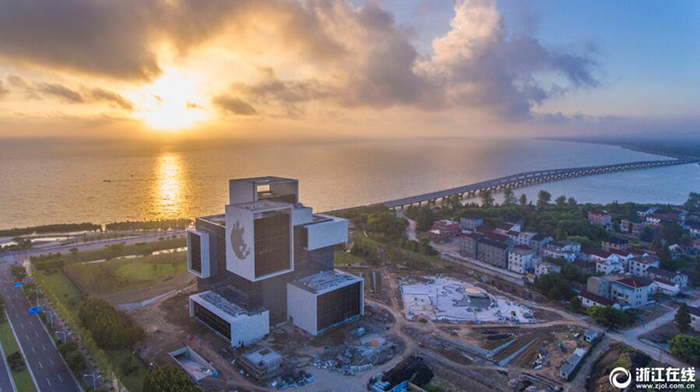 8月15日,位于浙江長興的太湖博物館在太湖晨曦的輝映下分外多彩,初展英姿。太湖博物館自2016年6月正式開工建設以來,在各方的共同努力下,目前整體建設已完成總工程量的90%以上。長興縣著力將太湖博物館打造成地標建筑、百年名館,預計今年10月1日開館,為確保高質量建成太湖博物館,施工單位倒排時間表,加快主體掃尾和內部裝修進度,同時加強內部施工安全生產管理和高溫天氣施工安全,確保如期開館。(拍友 鄒黎 攝)
