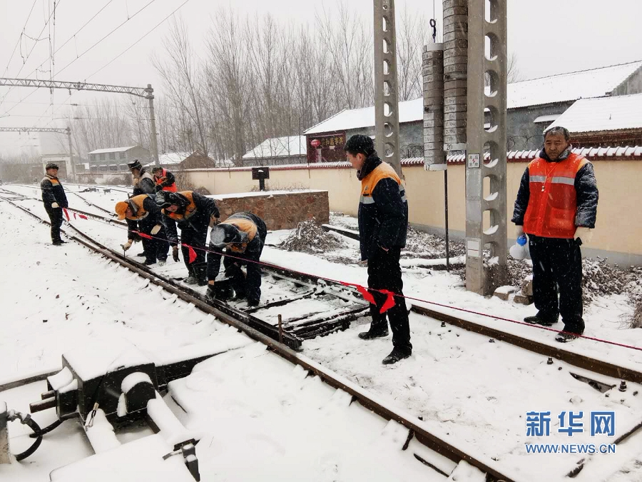 商丘火車站民權(quán)站組織干部職工及時(shí)清理道岔積雪,確保線路暢通!